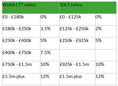 Similarly to SDLT, LTT is payable on the purchase or lease of buildings or land in Wales. However, new rates and bands have been introduced in respect of both residential and commercial property. Tables showing the new threshold and LTT rates are set out below, with differences highlighted in red.