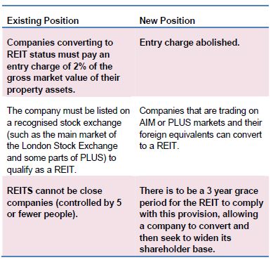 The barriers to entry have been significantly reduced with the abolishment of the entry charge and the relaxation of listing rules. With these barriers addressed, there are a variety of other companies who may now wish to convert to REIT status: AIM and foreign listed companies who do not wish to incur the cost of main market listing; family property companies considering succession planning; and property companies seeking equity investment.
