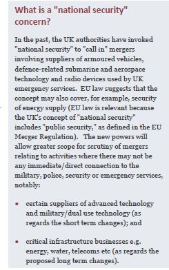 The UK government argues that its existing powers to scrutinise mergers on national security grounds (see above) are not broad enough. In the short term, a particular concern is that the current regime does not allow adequate scrutiny of the fast-moving technology sector.