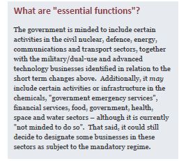 There would be criminal sanctions for failure to notify. The proposed scope of "essential functions" is outlined in the box opposite.
