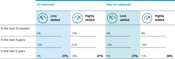 Of workers already based in the UK, overall 36 per cent are considering moving in the next five years.