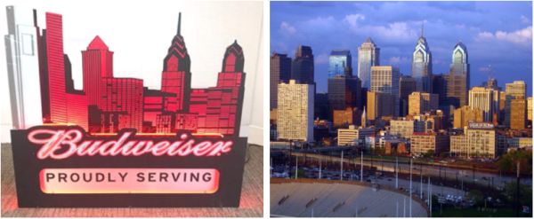 Maule claimed his photo was infringed by an Anheuser-Busch neon sign that he saw in the window of the Spruce Street Market. Like his photo, the neon sign portrayed the Philly skyline, and included the two buildings. Maule latched onto the sign's inclusion of the non-existent Mandeville Place and claimed the sign copied and infringed his photo.