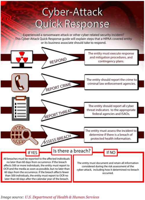 The Department of Health and Human Services' Office of Civil Rights (OCR) recently published a checklist to guide HIPAA-covered entities and business associates through an appropriate response to a ransomware or cybersecurity incident ("Incident"), as follows: