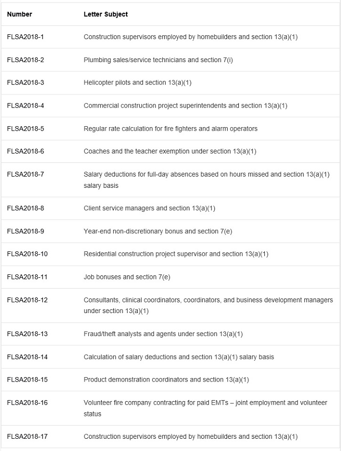 With Opinion Letters back, businesses have been waiting to see what the DOL would do with them. In the first week of 2018, the DOL answered that question by re-instating 17 opinion letters that were issued in January 2009 but withdrawn during the Obama administration. The DOL also reissued over a dozen advisory Opinion Letters that had been published during former President Bush's administration, but were also later rescinded.