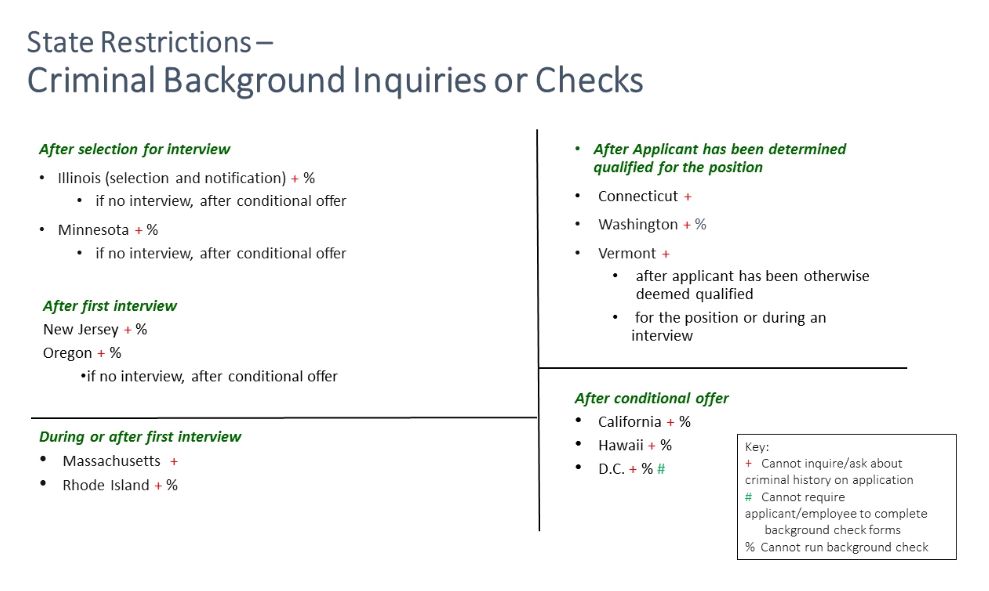 - If an earlier test is appropriate, review and comply with applicable ban the box requirements and restrictions (if any).