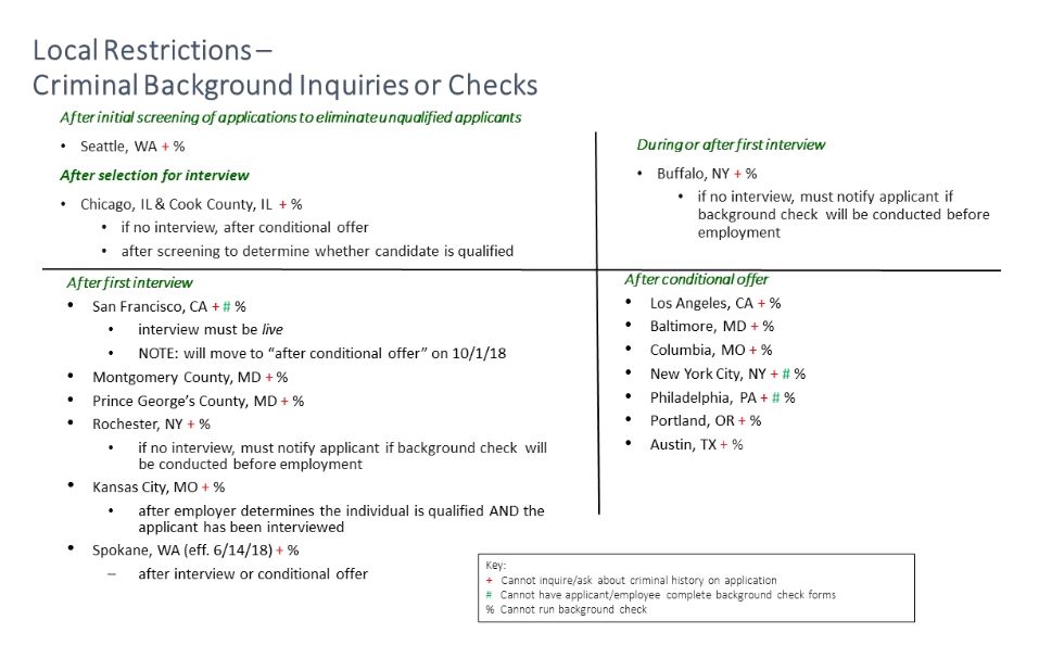 For an in-depth look at ban the box restrictions across the country, join us for our upcoming webinar, "'Ban the Box' Turns 20: What Employers Need to Know about the Current Framework," featuring attorneys from Ogletree Deakins' Background Checks Practice Group on September 18, 2018, at 2:00 p.m. Eastern. To register for this timely program, click here.