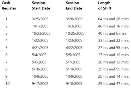 One explanation for such occurrences, provided via interviews and testimony by employees and their managers, is that employees use one another's IDs to operate the cash register. If so, it is unreliable to assume that any period of off-the-clock work can be identified by locating periods when an employee's ID is shown as operating a cash register when that employee is not shown as being logged into the timekeeping system. What appears to be off-the-clock work may simply be a second employee (one who is logged into the timekeeping system) operating the cash register under the ID of the first employee. While such problems are revealed through an analysis of statistical outliers (such as shifts exceeding 24 hours), simply excluding such outliers from any calculation of alleged off-the-clock work does not remedy the unreliability of the approach. The existence of such anomalous entries indicates that the cashier logs cannot be used to identify any periods of off-the clock work if, in this case, the practice of using a register activated by another employee was pervasive.