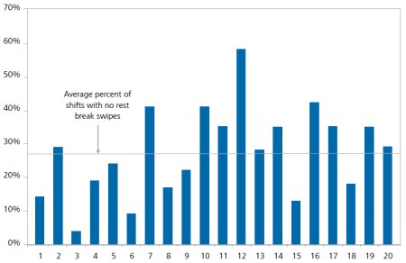 Figure 8. Percent Of Shifts With No Rest Break Swipes By Factory