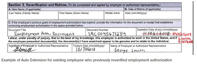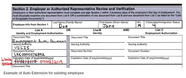 If you have an existing employee who presented an EAD that has now been automatically extended, the employee's Form I-9 should be updated to reflect the extension.