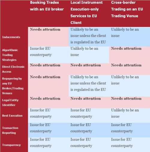 - Figure 1: MiFID II issues on which non-EU investment banks and brokers should focus, where relevant.