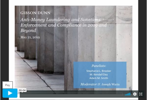 Anti-Money Laundering (AML), Bank Secrecy Act (BSA) and sanctions compliance and enforcement have become leading issues for companies across the full spectrum of the world's economy. Join Gibson Dunn partners as they discuss significant trends, emerging issues, and areas of risk in this dynamic, constantly evolving space.