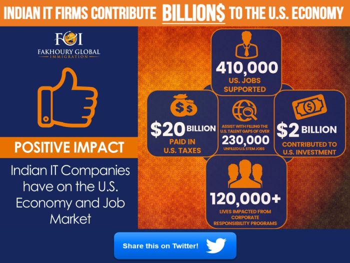 The proposed H-1B Crackdown has created turbulence within India's IT outsourcing industry. The economic and job creation statistics that reflect Indian IT Firm's contribution remain positive and are steadily increasing.