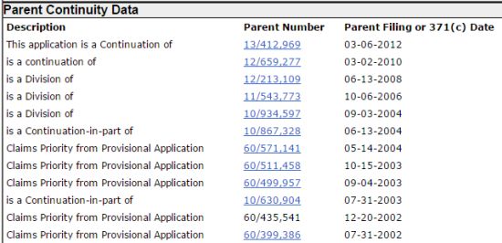 As shown above, the priority claim of the '395 Patent traces back to September 3, 2004 through a series of continuation and divisional applications. Since the PTAB was not persuaded that claim 1 was not entitled to the March 6, 2012 filing date of the '969 Application, if it had considered this issue it may have found that claim 1 is entitled to the September 3, 2004 filing date of the '597 Application, since that application appears to have the same specification. In that case, only items published or effectively filed before September 3, 2004 would qualify as prior art to claim 1 under 35 USC § 102(a)(1) of the AIA. However, it appears that each of Mueth, Durack and Frontin-Rollet were published or effectively filed after September 3, 2004.