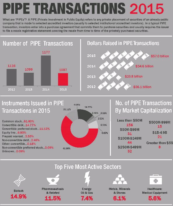 Volatile markets often require issuers to raise capital through PIPE transactions. We have collected data regarding PIPE transactions in the below infographic: