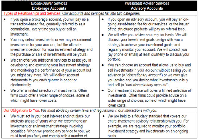 - comparisons of brokerage and investment advisory services (for standalone broker-dealers and investment advisers),