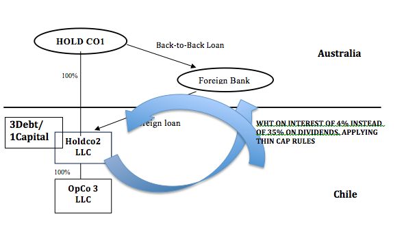 According to Chilean thin capitalisation rules, interest on the excess borrowing is subject to 35% if the loan is considered related and there is an excess of borrowing or a lack of capitalisation.